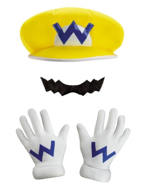 Warios Hat, gloves and moustache for Kids